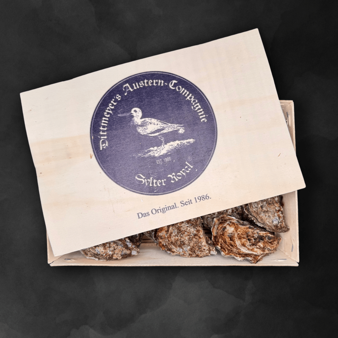 Die Sylter Royal-Austern sind weltweit bekannt für ihre außergewöhnliche Qualität und den intensiven Geschmack. Die Austern sind alle sechs Stunden der wechselnden Flut und Ebbe ausgesetzt. welche für genügend Nahrung für die Auster sorgt. Zart und gleichzeitig aromatisch, bieten sie ein perfektes Zusammenspiel aus süßlichem und salzigem Geschmack – ideal für den Genuss pur oder als Teil eines raffinierten Menüs.