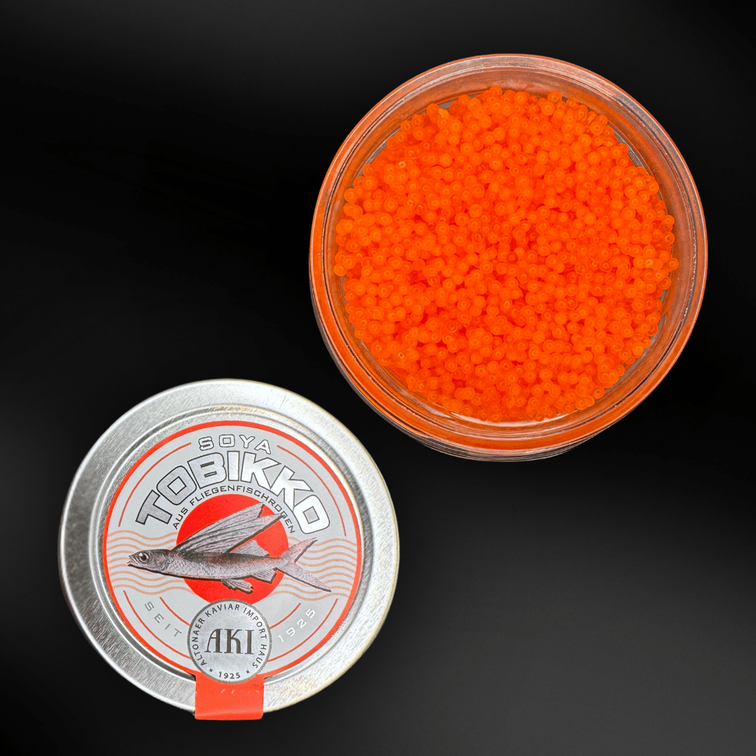 Mit seiner leuchtend orangefarbenen Optik und seiner knackigen Textur verleiht dieser Kaviar Sushi und anderen Gerichten einen besonderen Akzent. Sein mildes Soja-Aroma ergänzt sich perfekt mit einer Vielzahl von Geschmacksrichtungen und macht ihn ideal für die Zubereitung von Sushi oder die dekorative Veredelung von Vorspeisen.