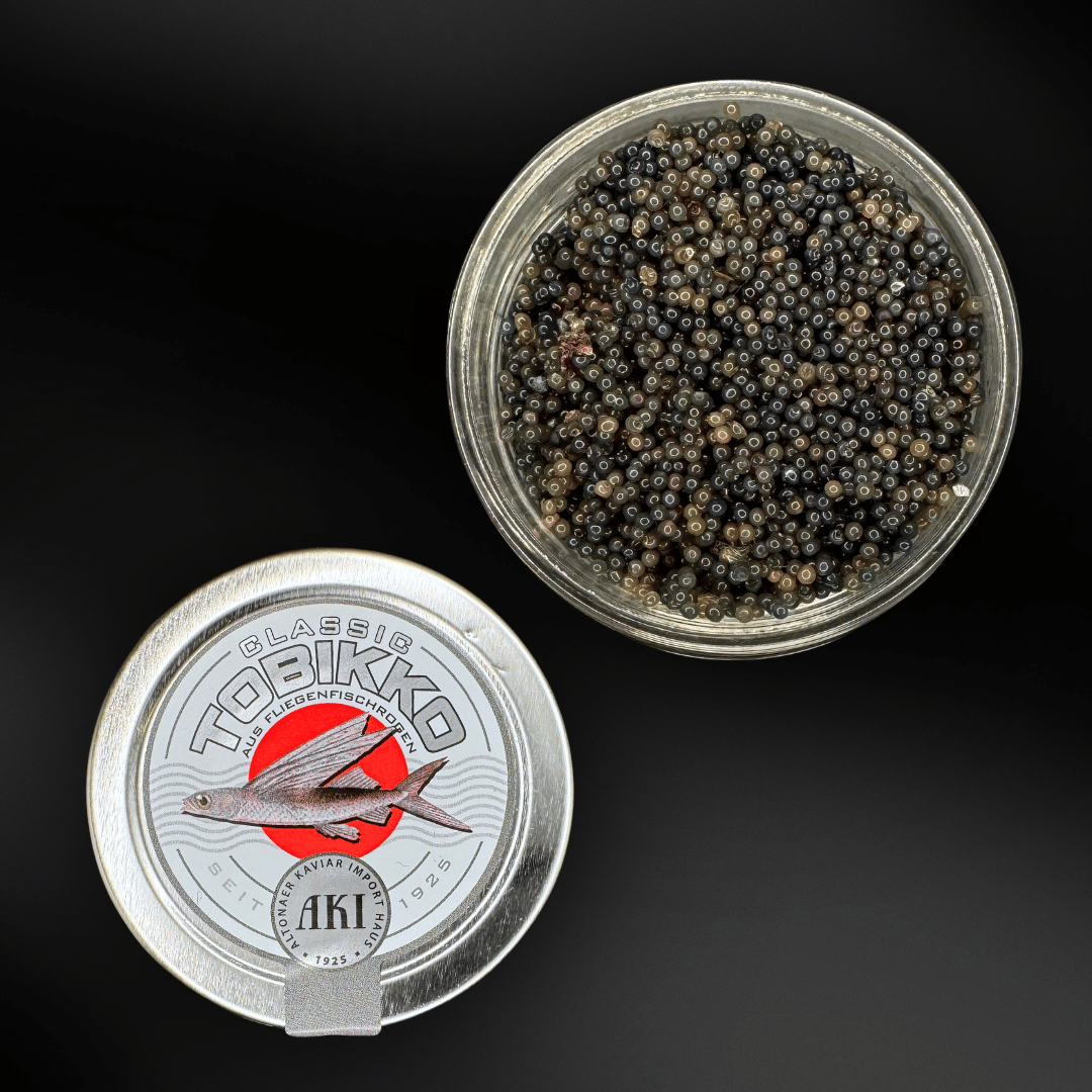 Aus wildgefangenem Fliegenfischrogen hergestellt und begeistert mit seiner knackigen Textur, ob als Highlight auf Sushi, Canapés oder in raffinierten Vorspeisen.