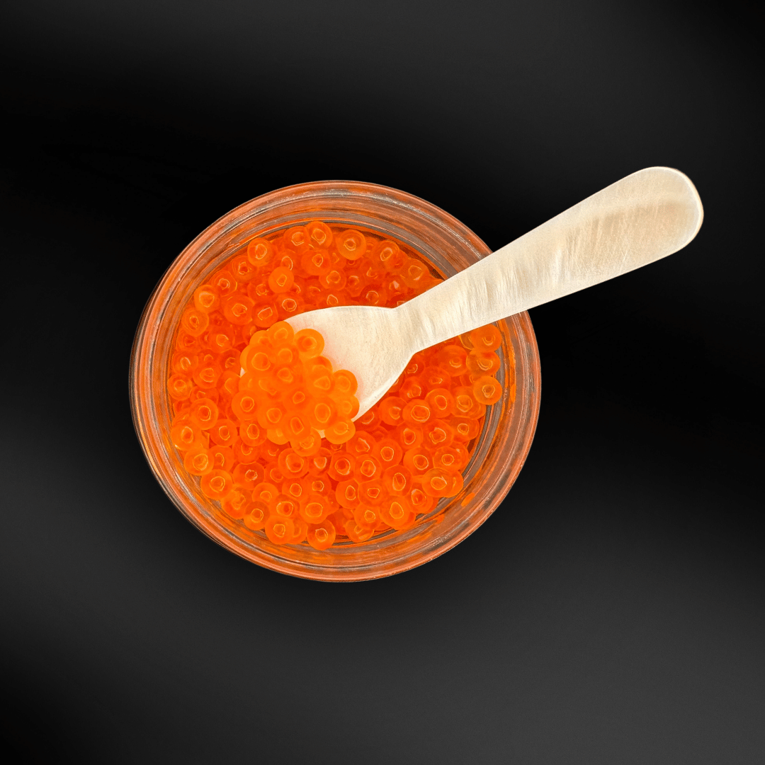 Höchste Qualität mit verantwortungsvoller Produktion vereint. Die leuchtend orangefarbenen Perlen stammen aus nachhaltiger Zucht und tragen das renommierte ASC-Zertifikat. Mit einer knackigen Konsistenz und einem mild-salzigen Aroma ist dieser Kaviar ein Highlight für Feinschmecker.