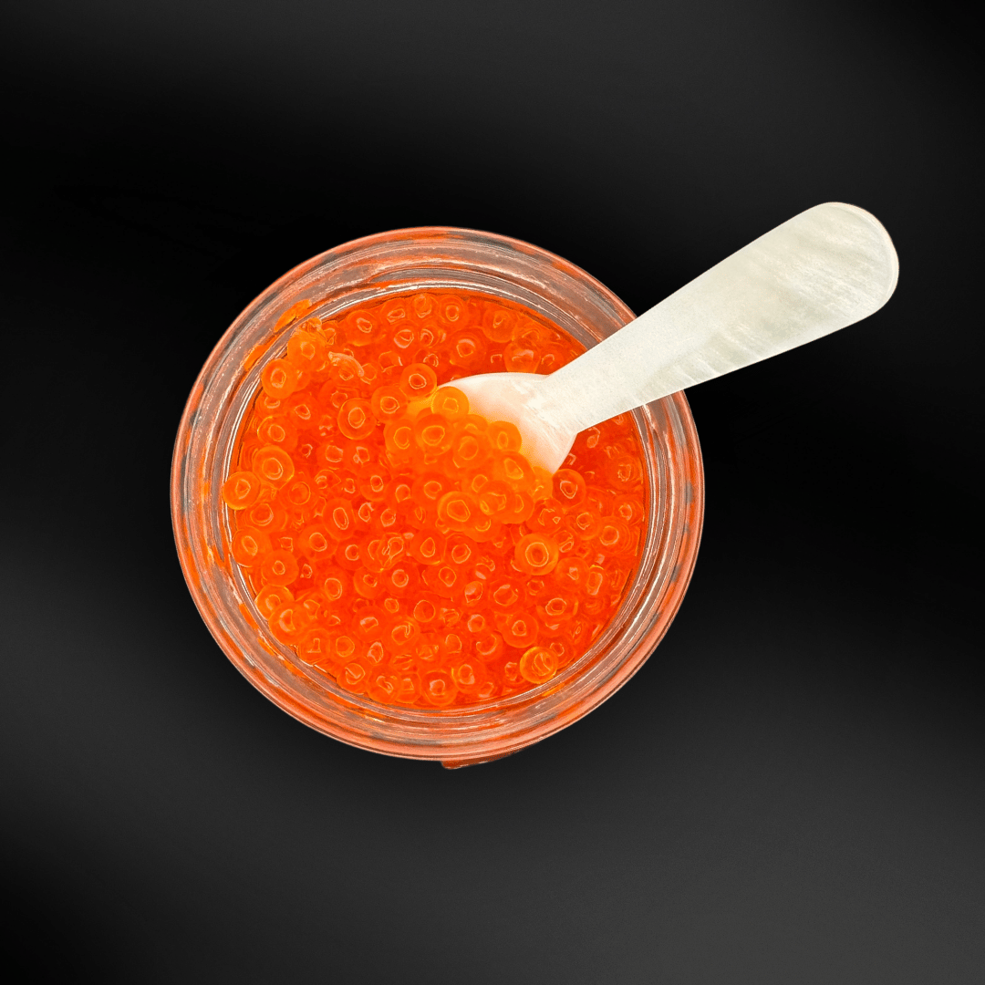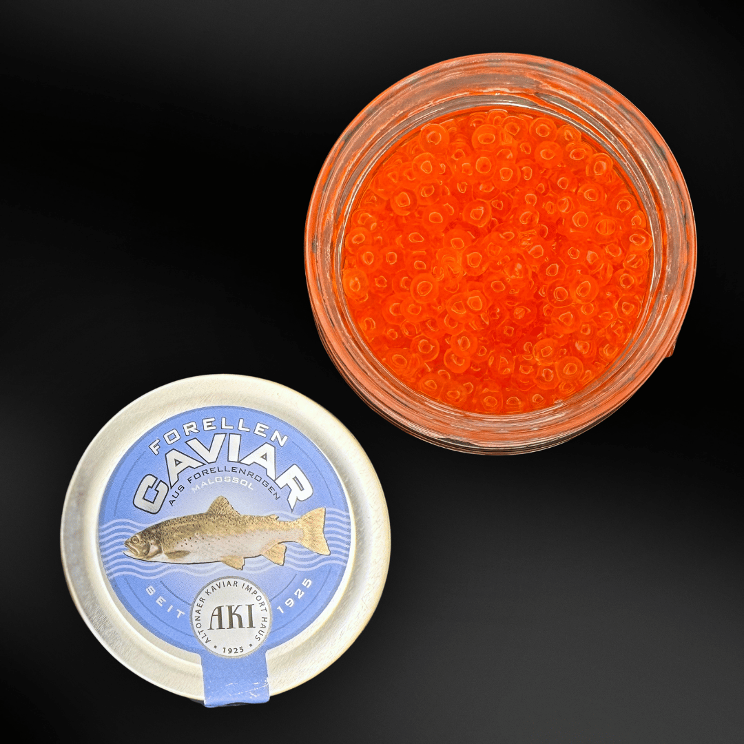 Mit dem AKI Forellen Caviar erleben Sie eine Delikatesse, die mit ihrer intensiven Farbe und knackigen Konsistenz überzeugt. Die leuchtend orangefarbenen Körner haben ein angenehm mildes und leicht salziges Aroma, das ideal zu einer Vielzahl von Gerichten passt.