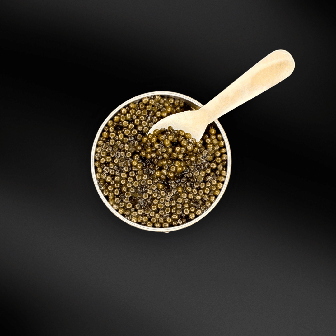 Dieser wahre Klassiker beeindruckt mit einem komplexen Aroma, das von einer nussigen Note getragen wird. Die Perlen stammen aus deutscher Zucht und begeistern mit einer schimmernden, besonders schönen Körnung, die von bernsteinfarben bis fast schwarz reicht. Die Aromen sind klar, einzigartig und elegant, mit einer buttrigen Nuance, die für ein harmonisches Geschmackserlebnis sorgt. Die feincremige, dennoch feste Konsistenz macht diesen Kaviar zu einer Delikatesse, die sich perfekt für besondere Anlässe eignet.