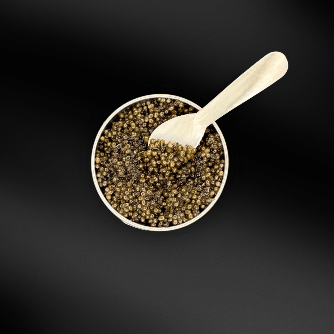 Eine Delikatesse für anspruchsvolle Feinschmecker. Hergestellt aus Störrogen, der sorgsam vom Rogensack getrennt, gewaschen und gesalzen wird. Der Kaviar besticht durch sein elegantes, stahlgraues Korn mit einer Größe von etwa 1,5 mm. Sein arteigener und milder Geruch sowie Geschmack machen ihn zu einer besonders edlen Wahl. Die feincremige Konsistenz und die zarten Schalen bieten ein unvergleichliches Mundgefühl.